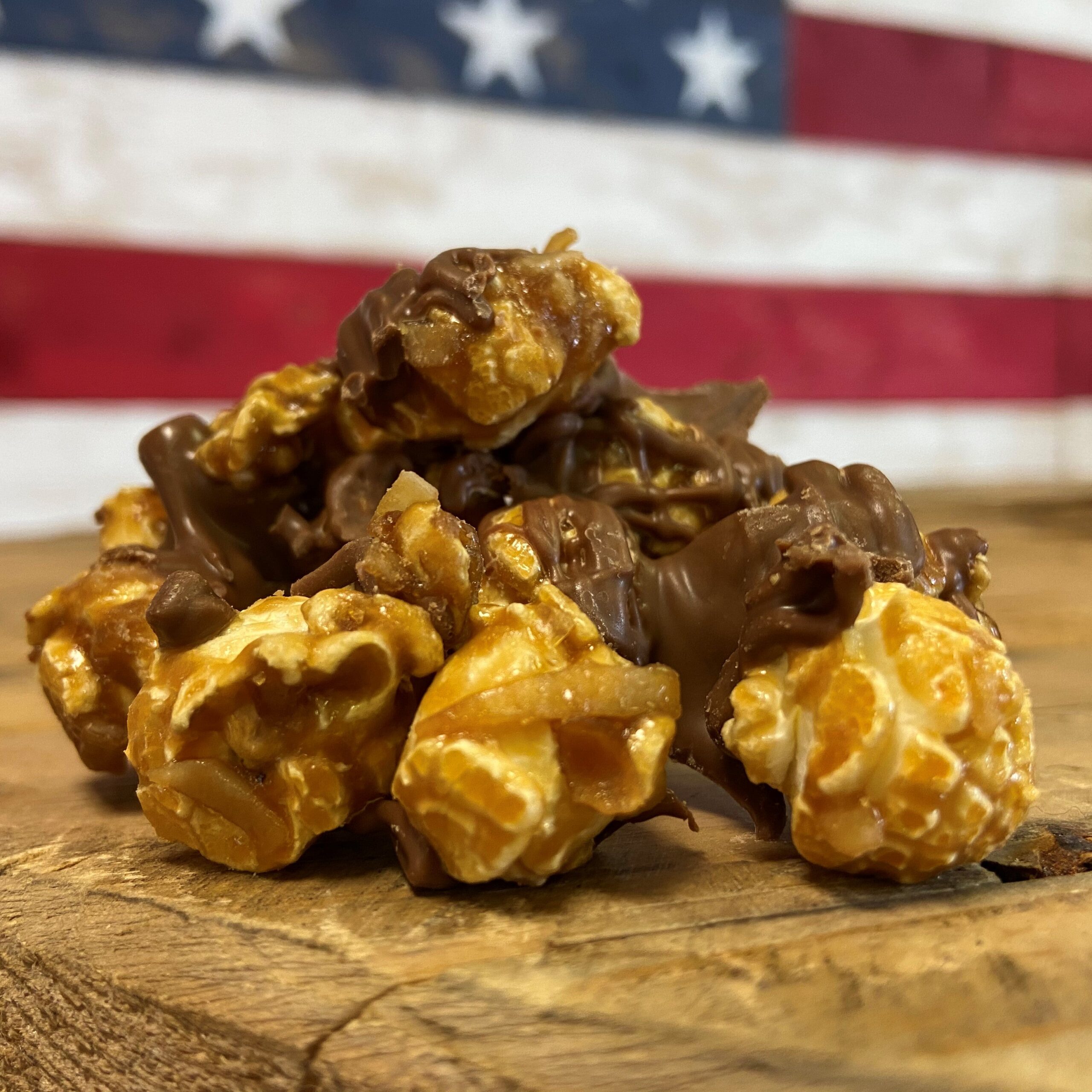We took our homemade caramel corn and just covered it with coconut and drizzled it with milk chocolate.
